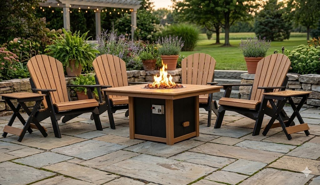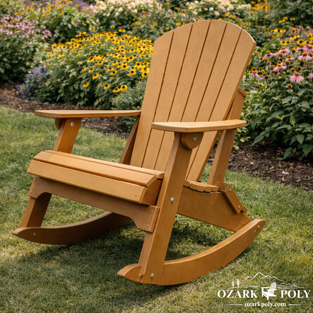 Our furniture is made from high-quality poly lumber, a durable material created from recycled plastics. It’s designed to look like real wood while offering superior resistance to outdoor conditions.
