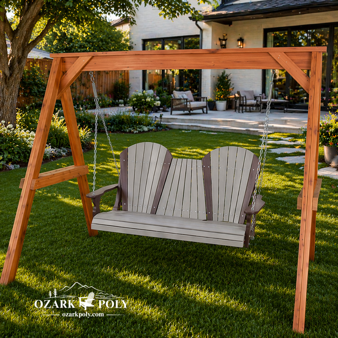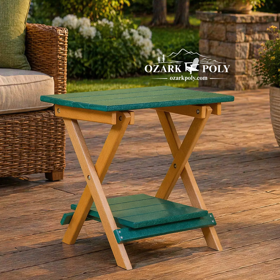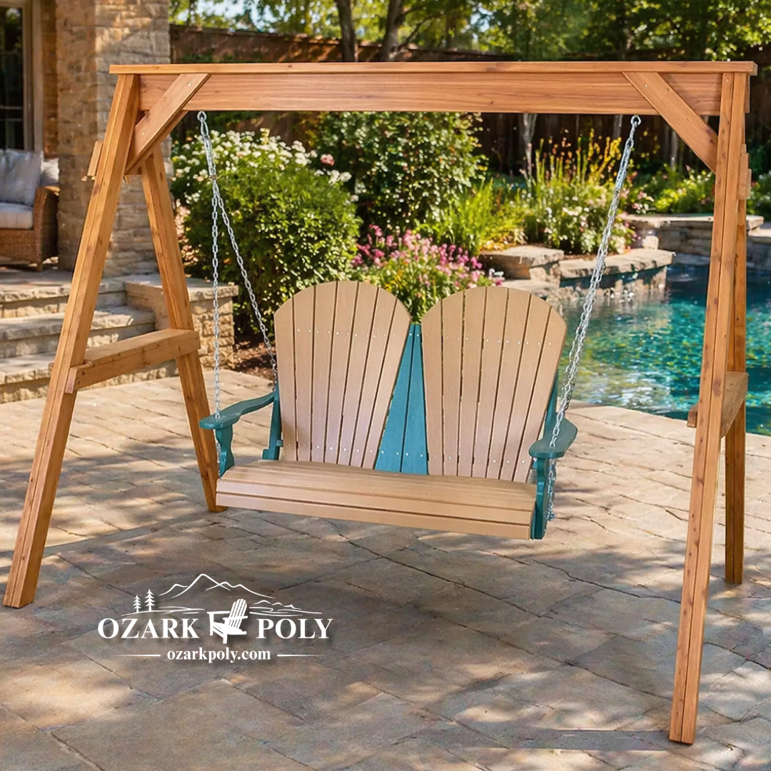 Our furniture is made from high-quality poly lumber, a durable material created from recycled plastics. It’s designed to look like real wood while offering superior resistance to outdoor conditions.